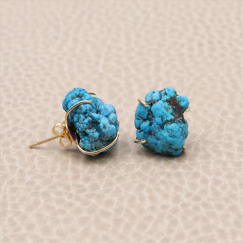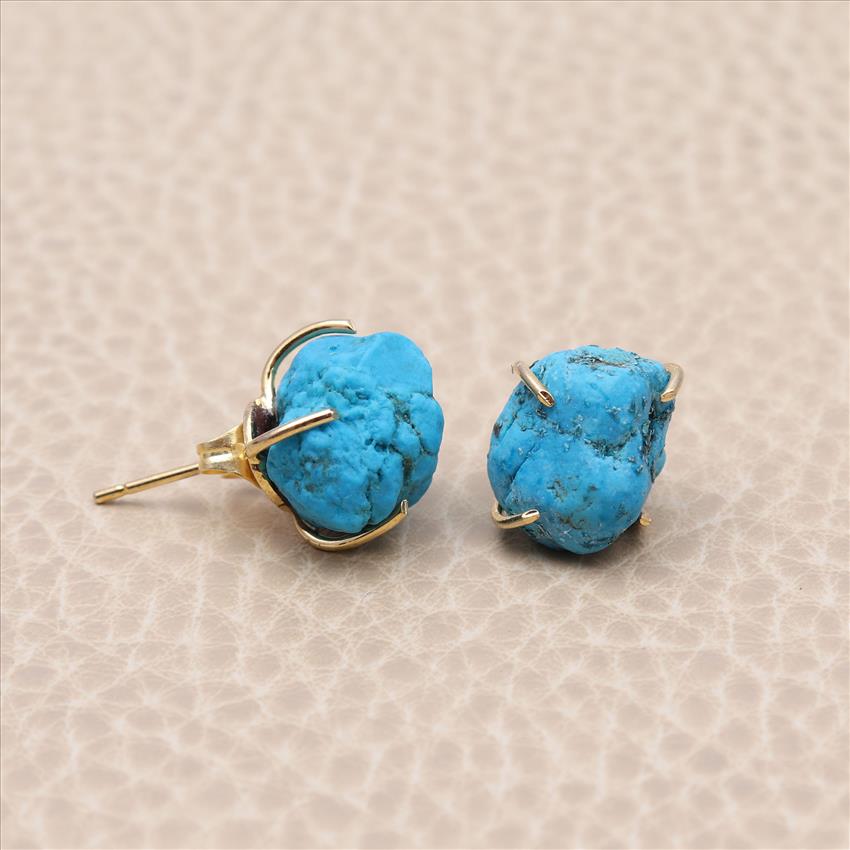 Blue Turquoise Rough Gemstone,Prong Style Gold Plated Stud Earring, Handmade Earrings Jewelry (EJ-1053)