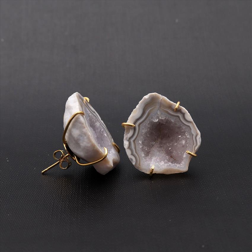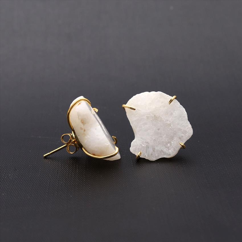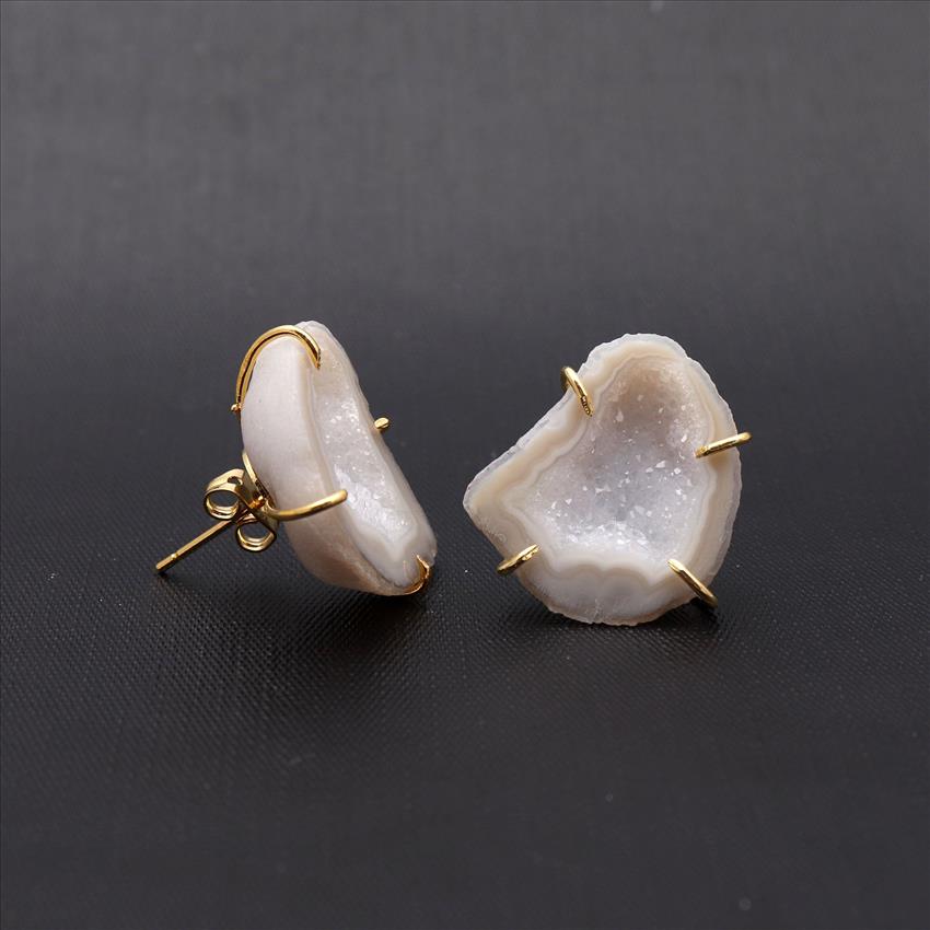 Amazing Natural Geode Druzy Gemstone Prong Style Earring, Gold Plated Stud Earrings Fine Jewelry (EJ-886)