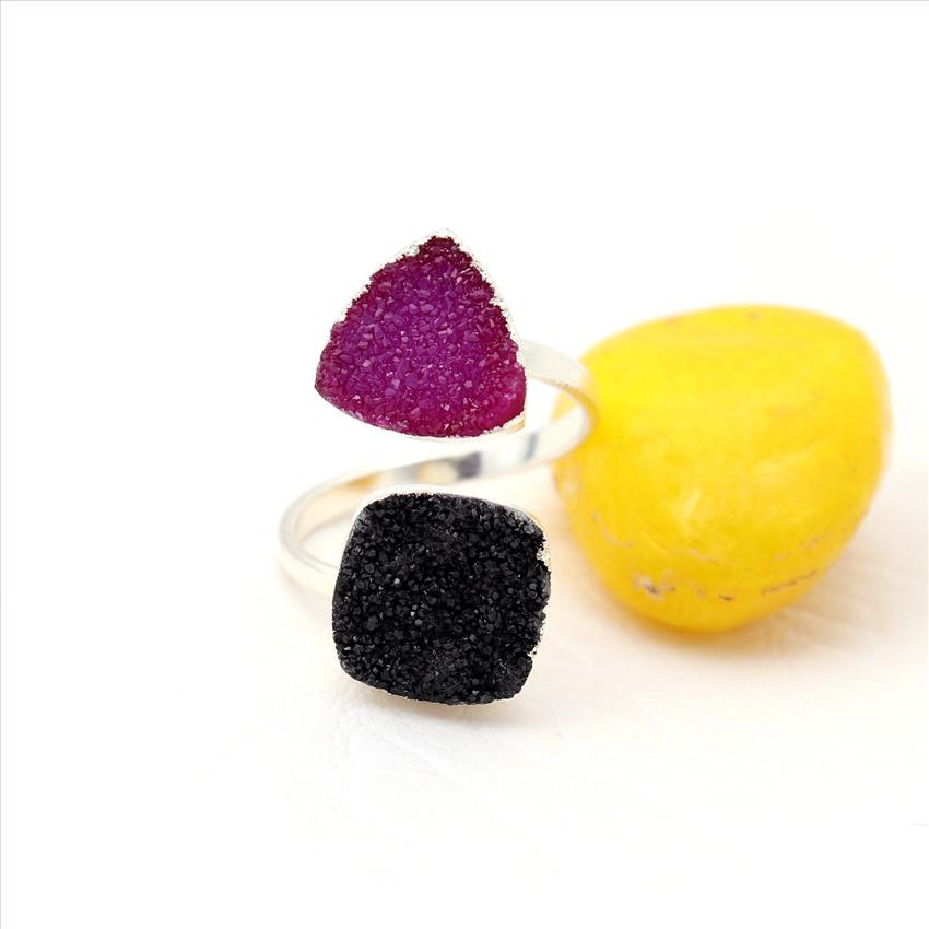 Natural Sugar Druzy Unique Adjustable Ring Multi Gemstone Ring Jewelry, Gold Plated Rings, Gemstone Supply Jewelry(EJ-1671)