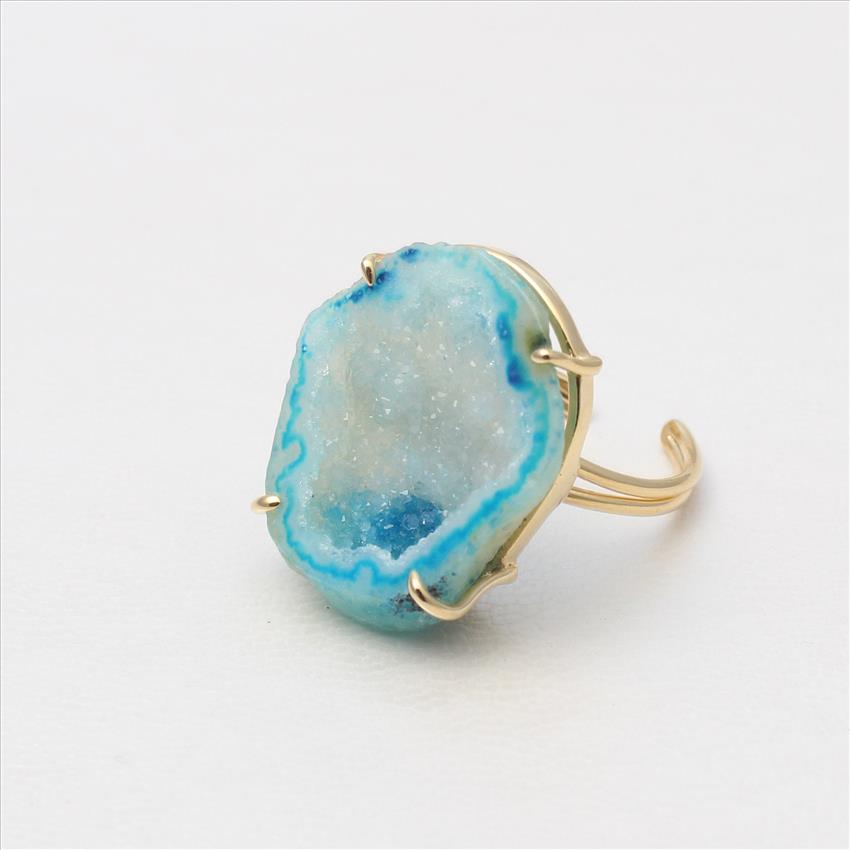 Natural Geode Druzy Rings, Geode Druzy Gemstone, Adjustable Rings, Gemstone Ring Jewelry (EJ-668)