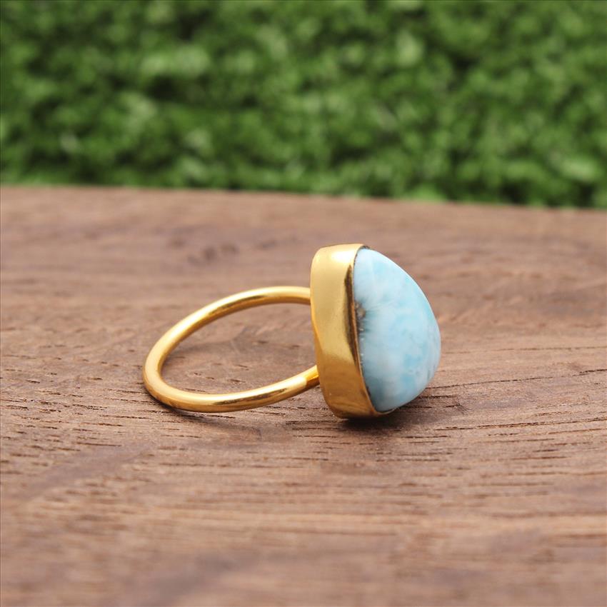 Larimar Gemstone Rings, Larimar Gemstone, Adjustable Rings, Gold Plated Rings, Dominican Blue Larimar Gemstone Jewelry (EJ-745)