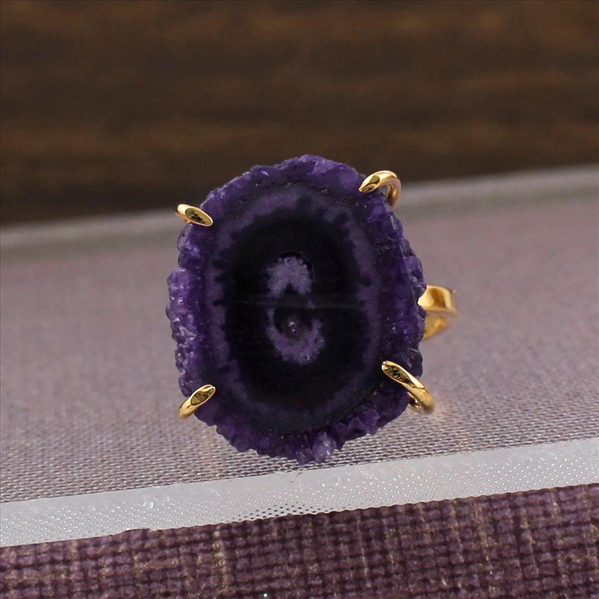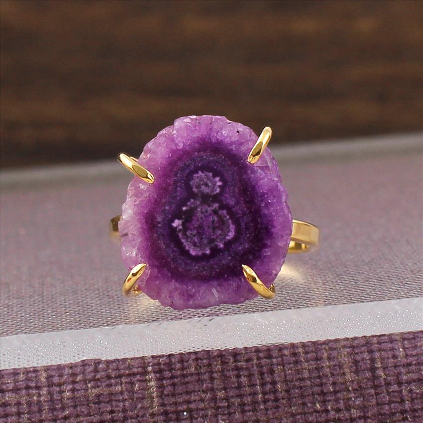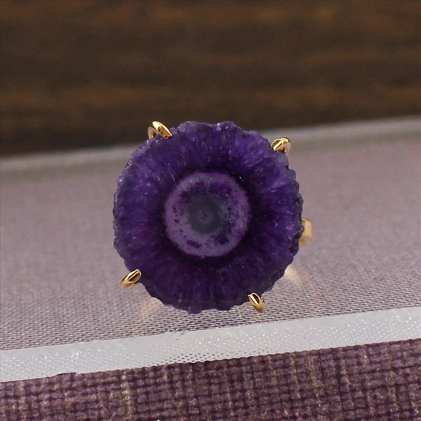 Purple Solar Quartz Gemstone Ring, Gold Plated Ring, Prong With Adjustable Handmade Ring Jewelry (SPR-43)
