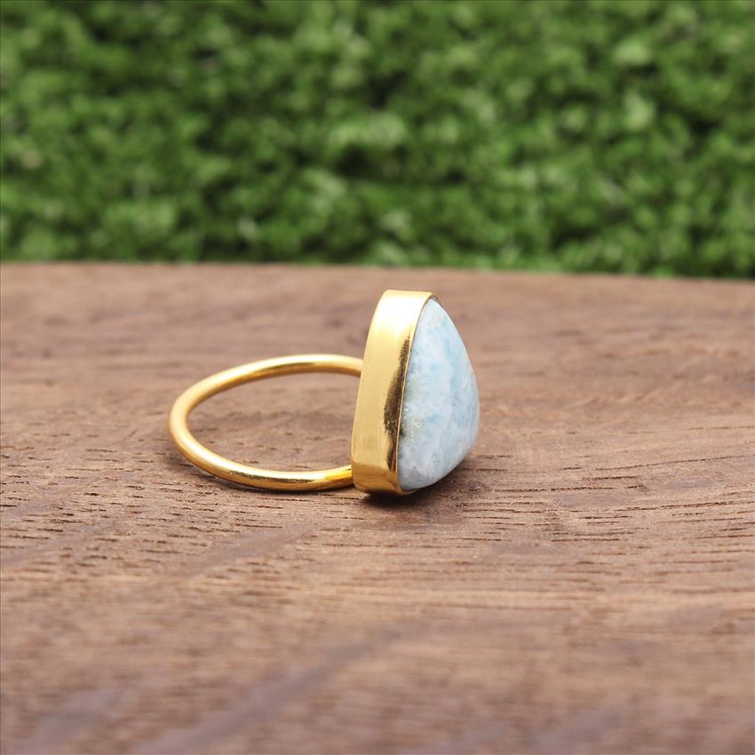 Larimar Gemstone Ring, Gold Plated Gemstone Ring, Adjustable Stylish Rings, Handmade Rings Jewelry (EJ-749)