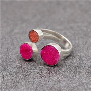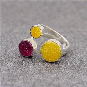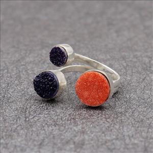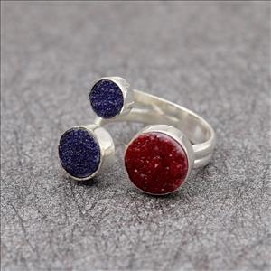 Adjustable Ring, Unique Natural Druzy Gemstone, Gold Plated Ring, Multi Gemstone Ring Jewelry (EJ-1634)