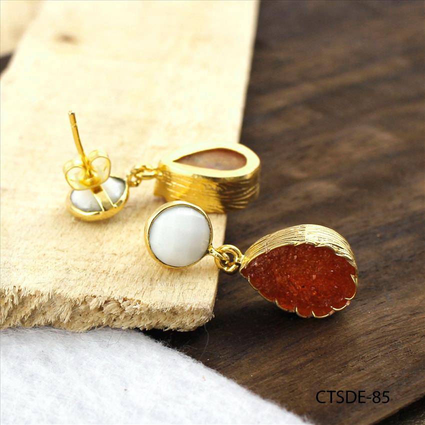 agate druzy gemstone, earrings, gold plated stud earrings, leaf designer earrings, Druzy Jewelry Earrings (CTSDE-83)